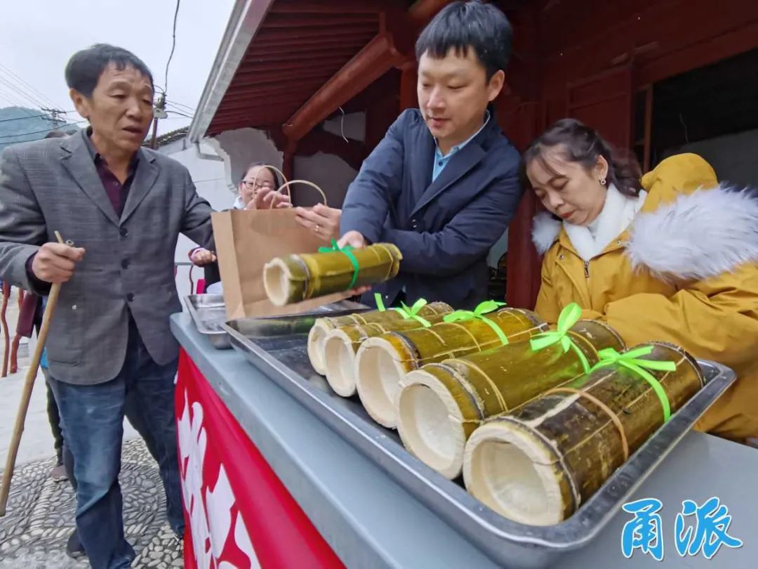 11月29日上午,善行城杨登山节开幕。活动结束后,从亭溪岭古道下山的驴友纷纷被路边刚出锅的竹筒饭吸引住了。