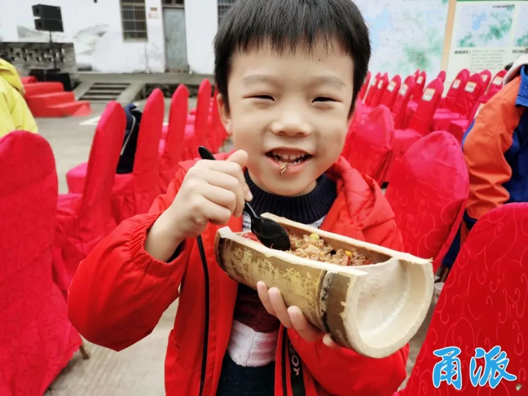 “味道挺好的,有股竹子的清香。”7岁的冯子琪边吃边说,这是他第一次品尝“竹子里的饭”。
