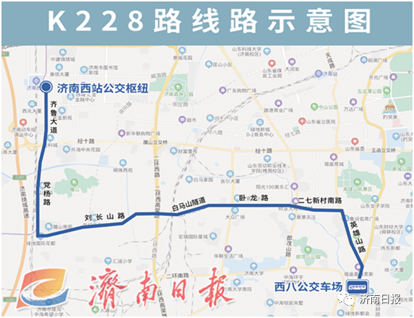 11月29日,记者从济南公交获悉,为进一步优化公交线网布局,方便英雄山路、卧龙路、刘长山路、党杨路沿线居民出行,12月1日起,开通试运行K228路。