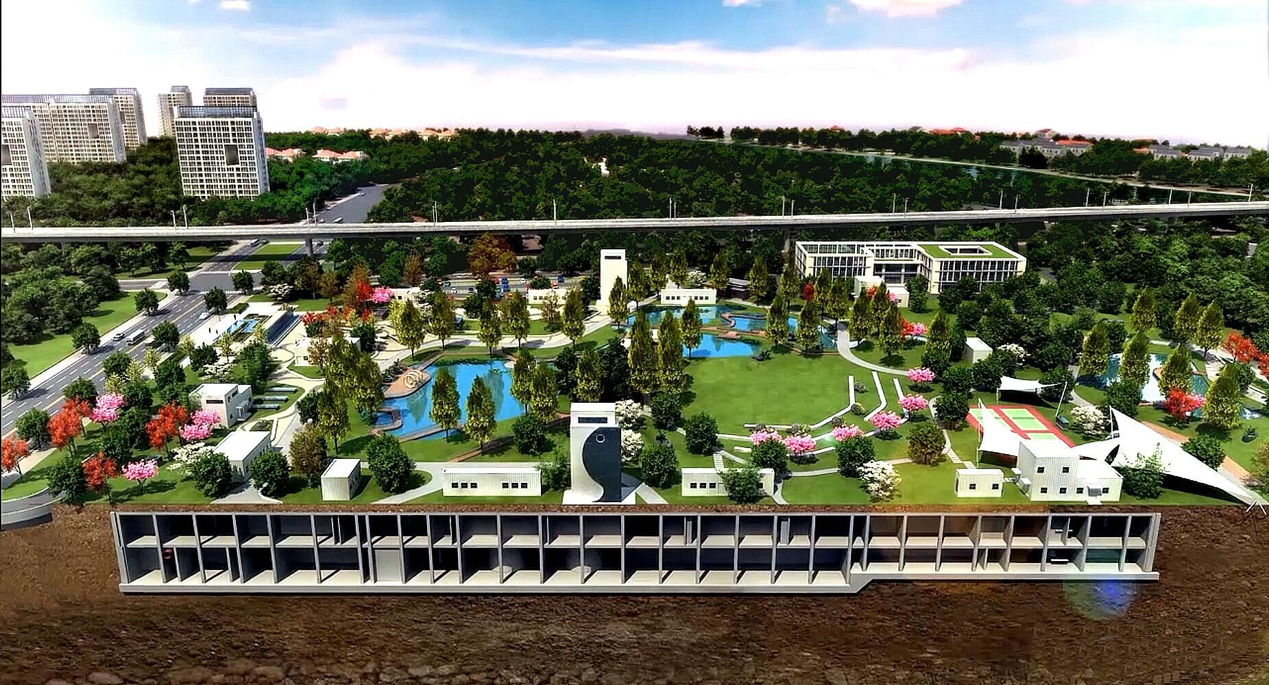 谌家矶再生水厂剖面图,地上公园,地下水厂。中交二航局提供