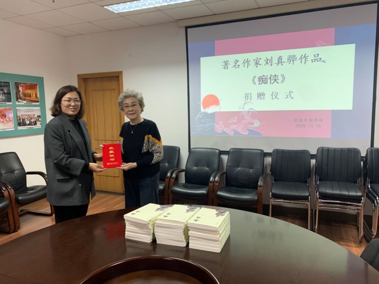 “弘扬铁道游击队精神,讲述红色经典作家的动人故事”,青岛市图书馆又获赠一珍贵文献资料!近日,“著名作家刘真骅作品——《痴侠》”捐赠仪式在青岛市图书馆会议室举行。青岛市图书馆馆长徐月霞、副馆长陈东庆参加捐赠仪式,接收捐书。