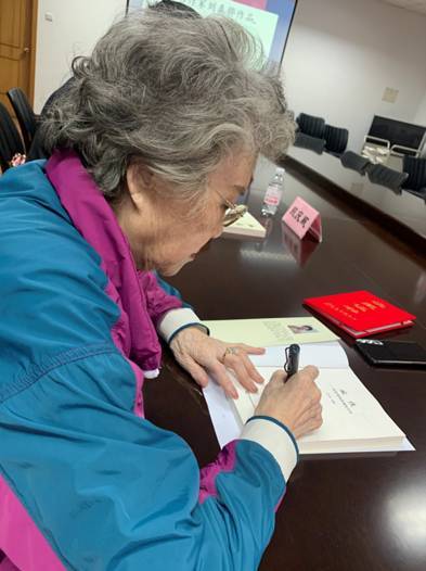 在捐赠仪式上,刘老师还详细地介绍了该书的创作历程,并生动地讲述了刘知侠与她相濡以沫、互相扶持的那段美好岁月。据了解,已是83岁高龄的刘真骅老师,为该书的编辑出版倾注了大量心血,这也是她自身与疾病顽强作斗争的过程,充满了艺术家进行再创造的艰辛与不易,在座众人无不为之动容。