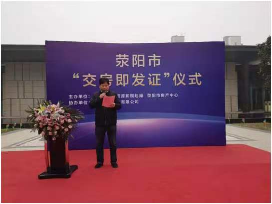 荥阳市自然资源和规划局党组成员、副局长聂永红出席仪式并现场为业主代表发放不动产登记证书。