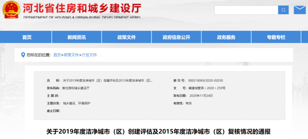 最新消息!近日,省住建厅通报2019年度洁净城市(区)创建评估及2015年度洁净城市(区)复核情况,石家庄市新华区等16个县(市、区)通过“洁净城市”评估,保定市高碑店市等10个2015年度“洁净城市”继续保持“洁净城市”标准。