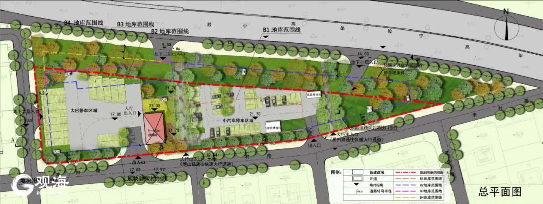 项目总占地面积约5322平方米,总建筑面积17760平方米,其中配建不少于500平方米的集中绿地。项目综合利用地下空间及沧口路绿化带地下空间,将建设四层地下社会公共停车场。同时,还将预留与规划聊城路地下停车场、规划地铁站点的地下连通条件。