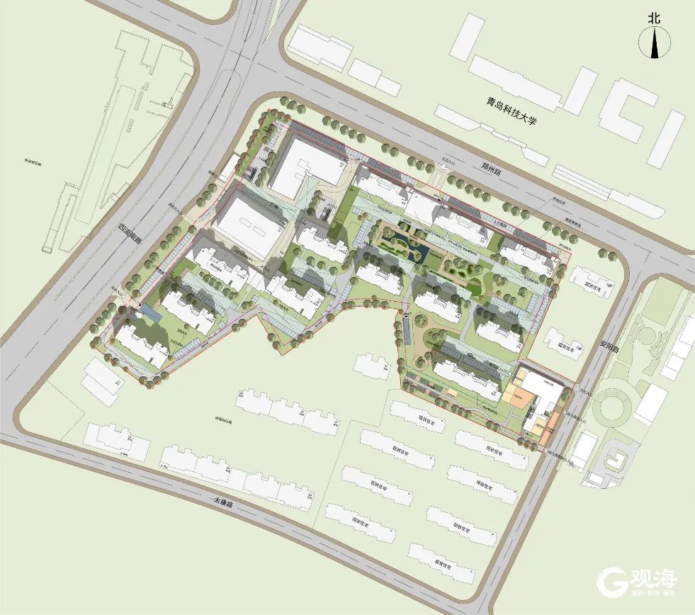 该项目位于市北区四流南路以东、郑州路以南、安阳路以西、太康路以北,从区位图上看,项目毗邻青岛科技大学,原址为青岛造纸厂,经过老企业搬迁改造地块集中发展后,厂区所在地块的用地性质调整为商住用地。项目共分三期建设,规划14栋高层建筑。