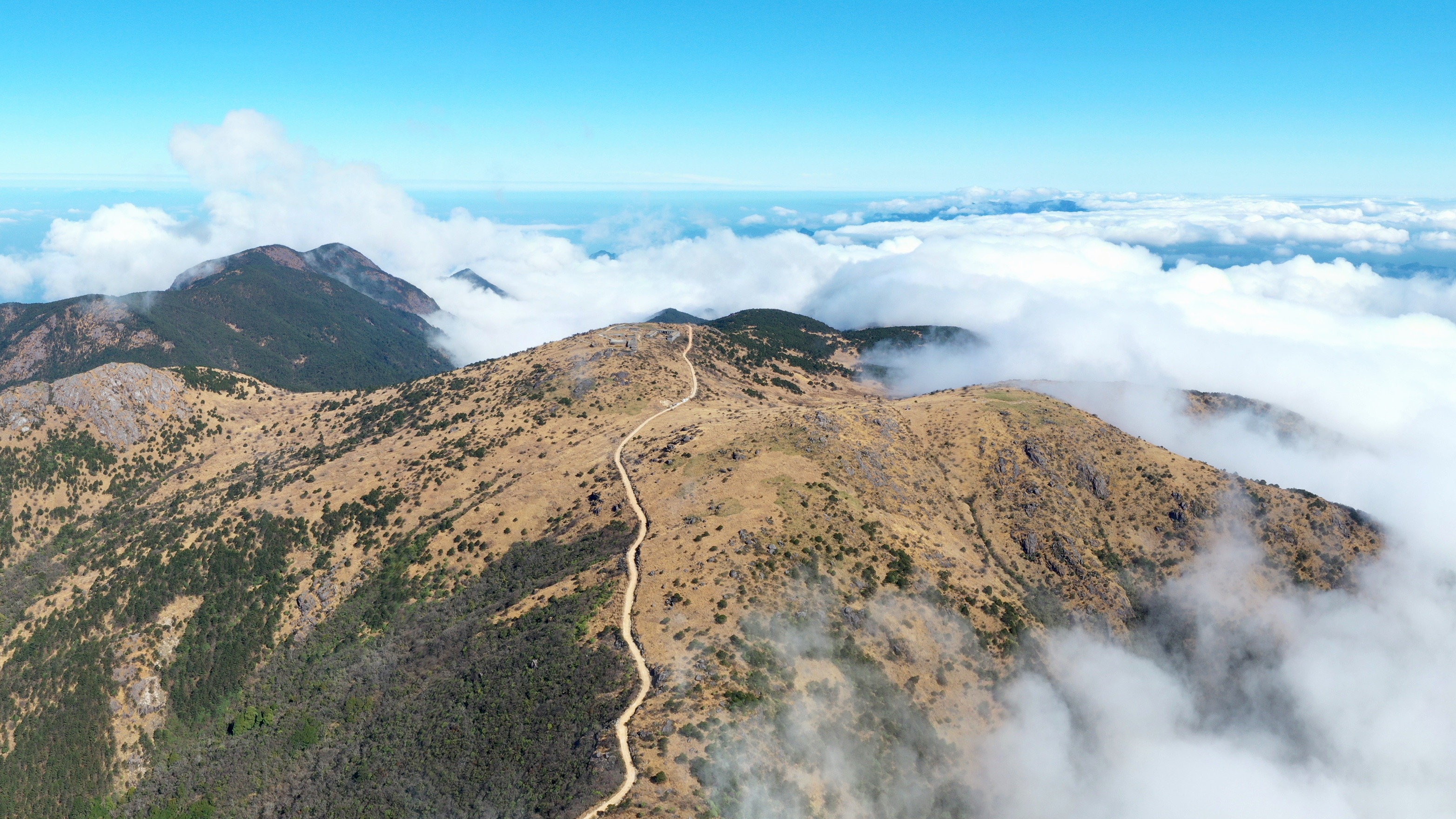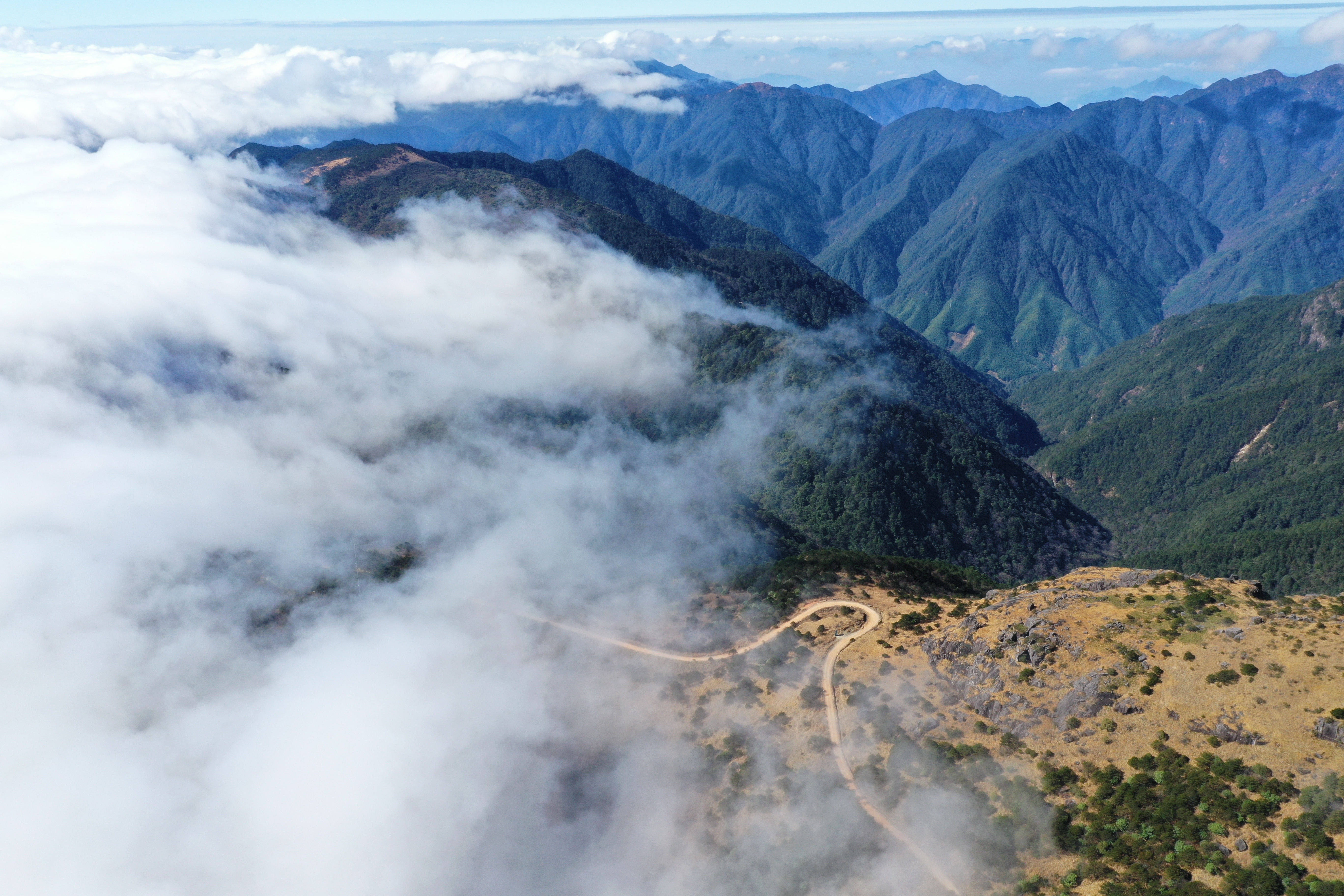 12月1日,武夷主峰黄岗山上的小路蜿蜒在云雾之中(无人机照片)。