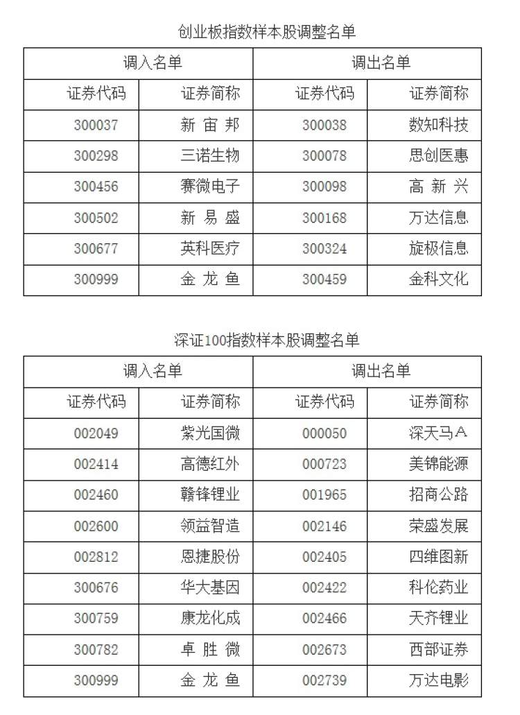 其中,深证成指将更换31只样本股,调入漫步者、上海新阳等股票,调出神州高铁、合众思壮等股票。