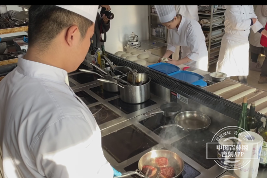 中国吉林网记者来到了吉林省工商技师学院,在“技能大师工作室”内,四名参赛选手正在紧张有序的处理着手中的食材。
