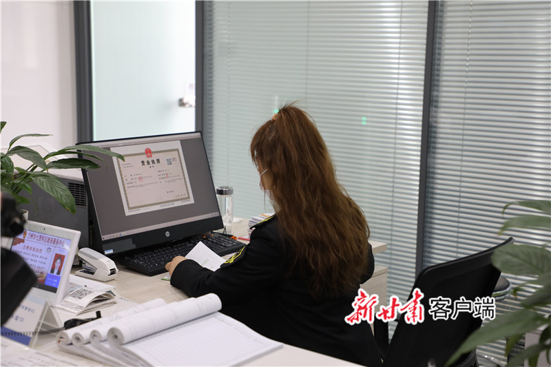 兰州市七里河区政务服务中心工作人员为企业线上办理跨省营业执照。