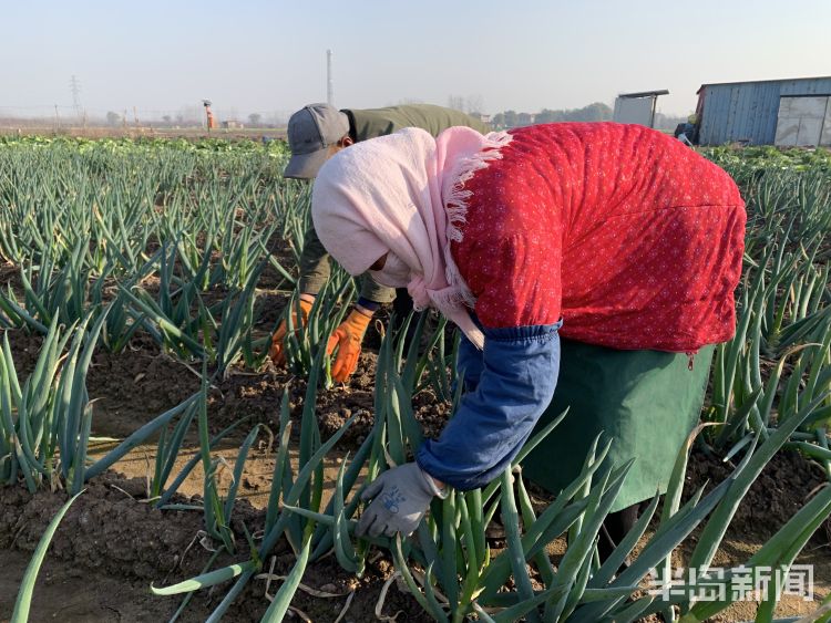 11月30日清晨,胶州市官庄村,气温已经接近零度,在吕尊玉的种植基地内,远远望去,寒风中大片的铁杆葱绿意盎然。