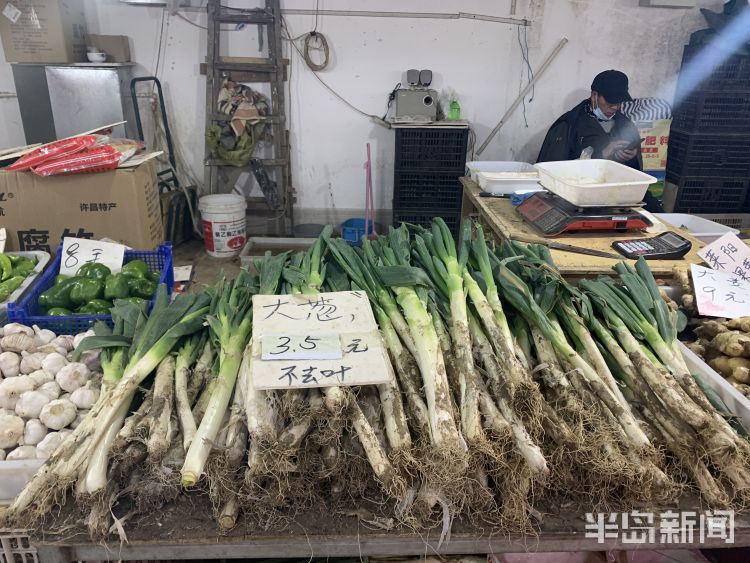 随后,记者又来到位于辽宁路的京鲜菜市,这里是一处室内农贸市场,相比早市,经营时间更为常规化。这里大葱的价格在3.5元到4元每斤。区别是前者葱头处带泥较多,而后者相对干净。