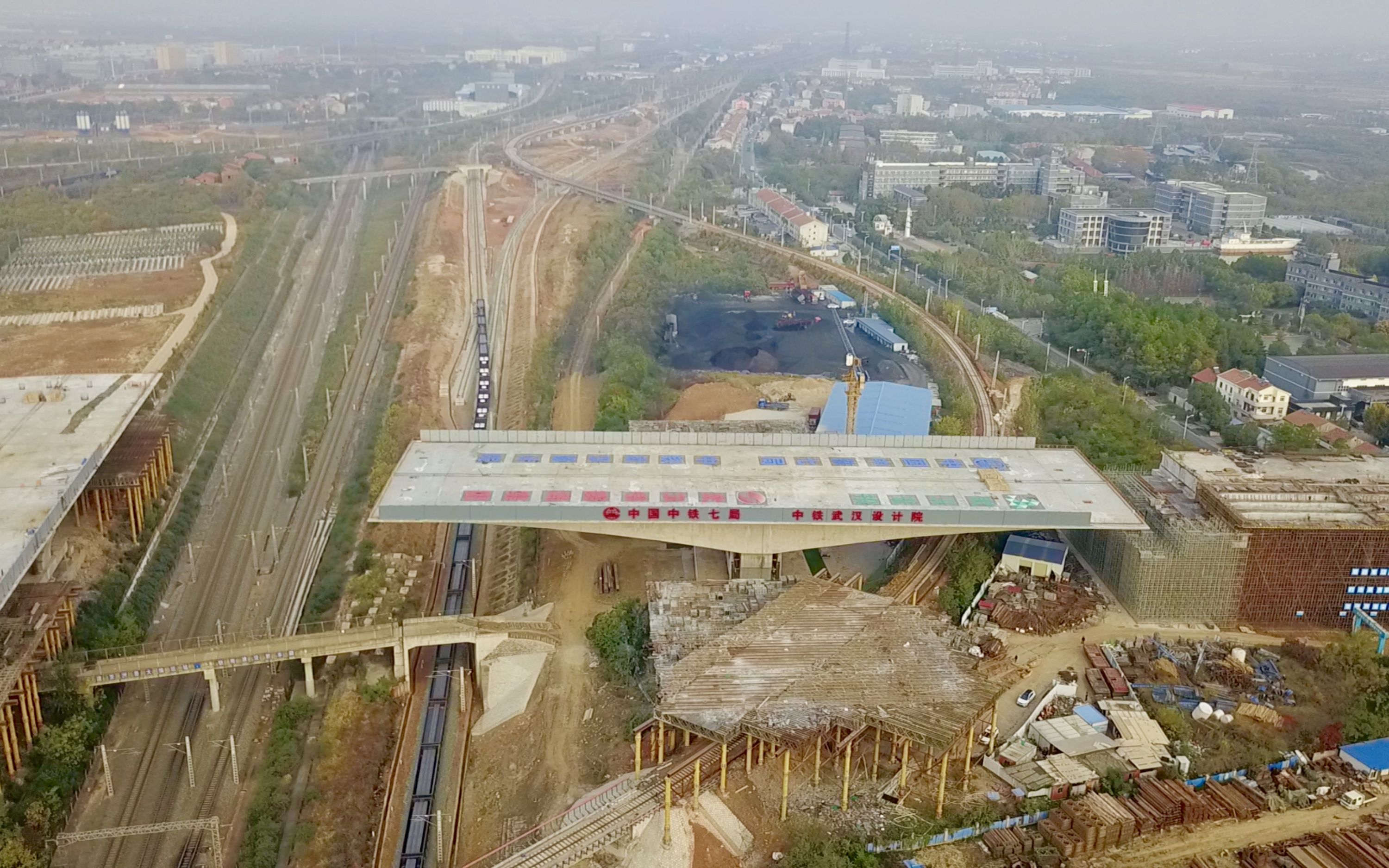 以跨越汉口北编组站为例,施工方中铁七局武汉公司采用了4座转体桥梁的形式,其中最大的转体桥梁是3.3万吨。“桥梁转体的核心部件在于球铰,转体时采用了国内最先进的大尺寸、高精度球铰,直径5.2米的球铰安装在桥梁的上下承台之间,误差在1毫米之内,上转盘承载着转动的梁体,下转盘则与桥梁基础相连。”项目相关负责人介绍。这是国内首次一个项目在1公里范围内有连续4座转体桥,也是国内最密集的转体群,转体群总重量高达11.5万吨。