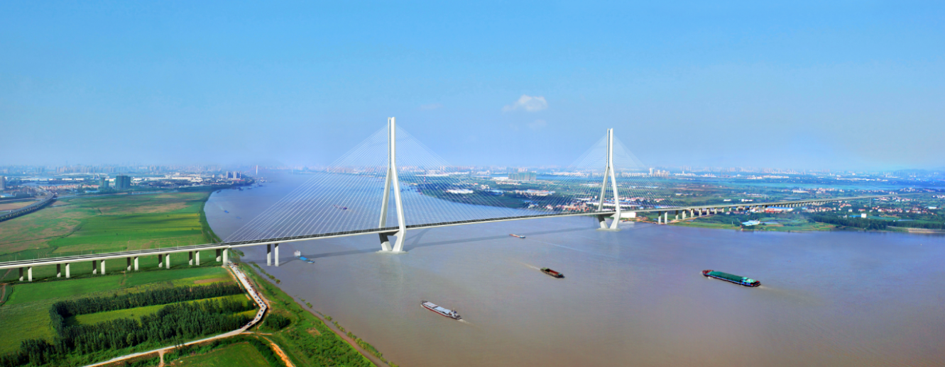 该桥位于80万吨乙烯化工区、武钢外贸码头和阳逻港王家屋锚地之间,是未来重载车过江通行主干道。此外,桥址位于长江武汉段黄金航道,大桥的设计还需满足未来大通航的需求。这就要求它具备大跨、超宽、重载的特性。