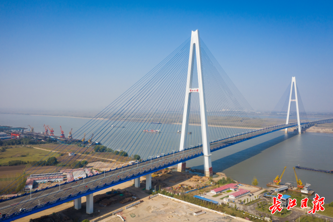 沌口长江大桥全长8.599公里,为主跨760米的双塔双索面钢箱梁斜拉桥,桥宽46米,是目前国内设计载重量最大的重载桥梁之一,大桥建成用钢量相当于6座埃菲尔铁塔。
