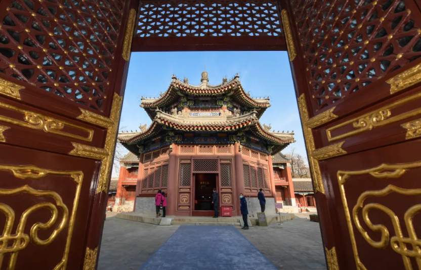 这是12月1日拍摄的陈列马首铜像的圆明园正觉寺文殊亭。新华社记者 李贺 摄