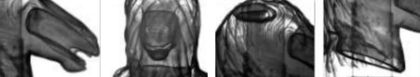 X光照相结果显示,马首除了颈部前下方可见数个锔钉外,其他各个部位都无明显的分铸焊接痕迹,由此可知马首系浑铸而成,颈部和脸部以及眼睛、耳部、嘴和舌头都应为一体铸造,非常形象逼真,马脸及下颚的曲线都被流畅地展现出来。