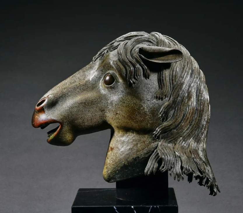 马首铜像融合了东西方艺术理念与设计风格,以精炼红铜为材,色彩深沉厚重,历百年风雨而不锈蚀,以失蜡法一体铸造成型,神态栩栩如生,毫发毕现,展现出极高的工艺水准,是一件非凡的中国古代艺术品。