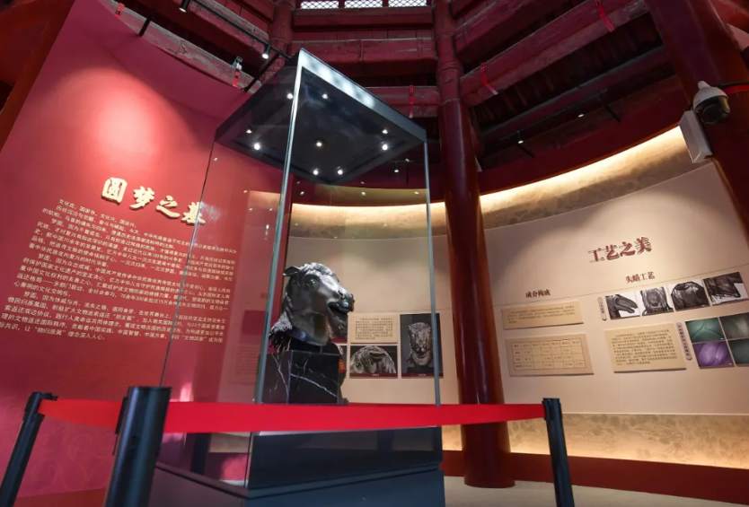 《百年梦圆——圆明园马首铜像回归展》同期开展。展览以马首回归为主线、分为圆明重光、万园之园、马首回归三个单元,展览面积1172平方米,共展出文物、照片等共约100组件,作为正觉寺基本陈列持续展出,即日向社会公众开放参观。