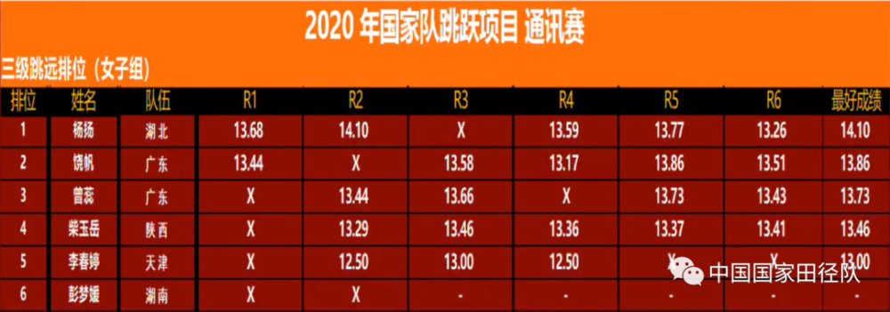中国田协主办的线上通讯赛成绩表。中国田协提供