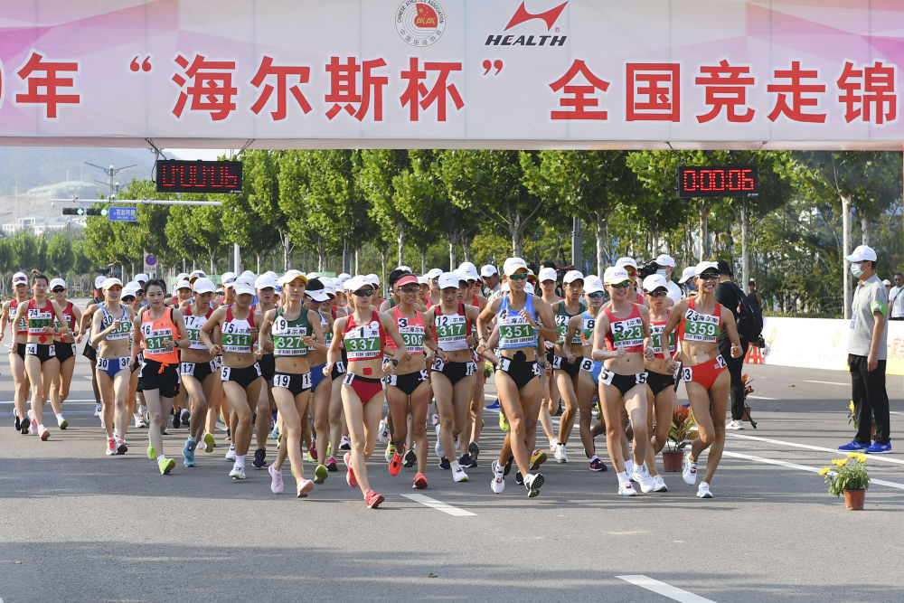 9月20日,运动员在全国竞走锦标赛女子成年组20公里竞走比赛中出发。新华社记者朱峥摄
