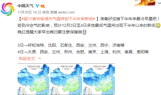 预计雨雪天气过后,3日起中东部多地气温还将再创下半年以来的新低