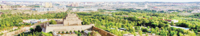 陕西榆林市镇北台裸露土地全面绿化,树林环绕。新华社记者 陶 明摄