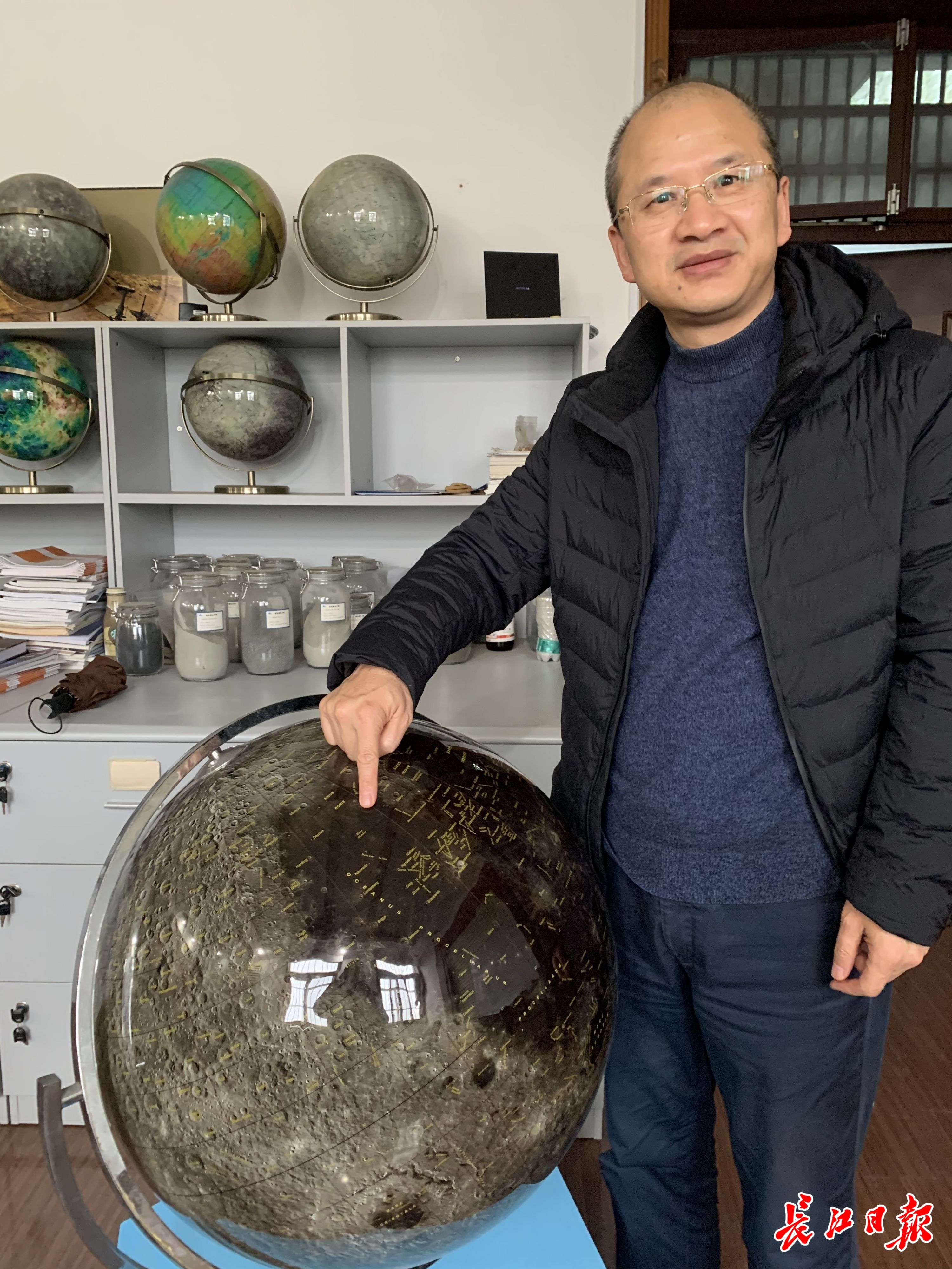 肖龙教授向记者展示着陆点月球月海位置。记者杨佳峰 摄
