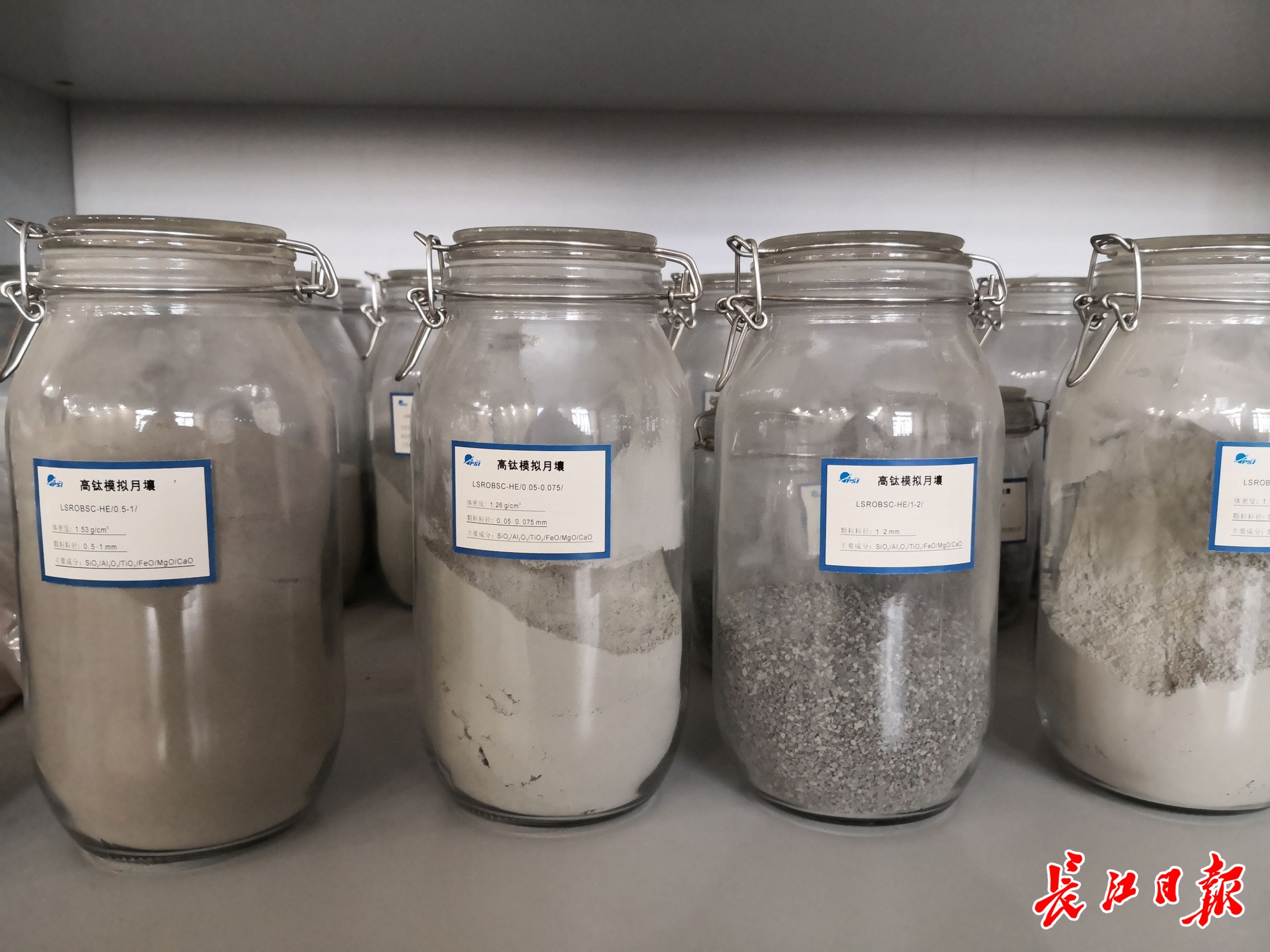 在肖龙教授的实验室兼办公室,记者发现桌面上放置最多的就是各种类型的模拟月壤,记录了这一团队10年的奋斗历程。“现在摆这里的已经很少了,最多时房间里根本摆不下,都移放到车库里了,同样也是塞得满满的。”肖龙说,试验需要用到大量的岩石、土壤等原材料,实验室放不下,他把自家的车库改为了临时仓库。
