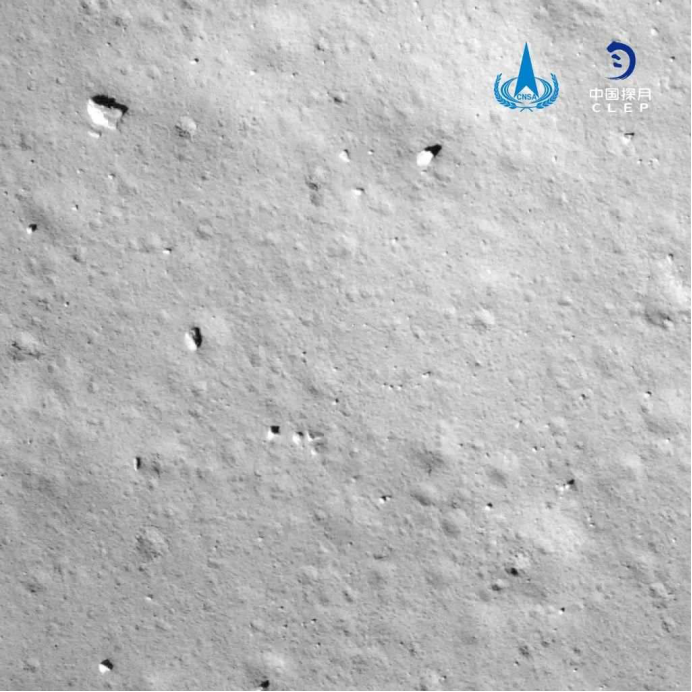 嫦娥五号探测器成功在月球正面预选着陆区着陆,降落相机发回月面照片。