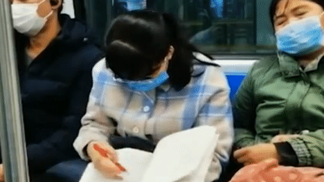 老师辛苦了!网友坐地铁偶遇女老师批改试卷。