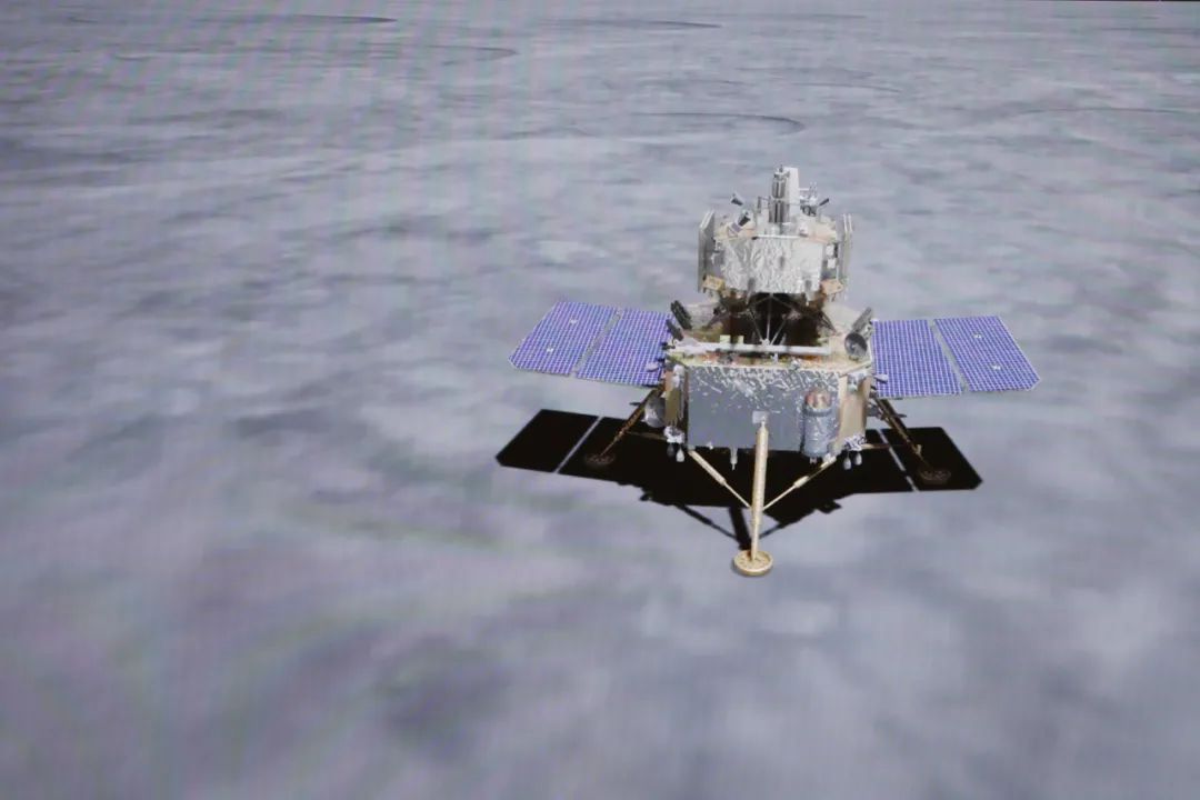 不久,探测器进行障碍自动检测,选定着陆点后,开始避障下降和缓速垂直下降,平稳着陆于月球正面风暴洋的吕姆克山脉以北地区。