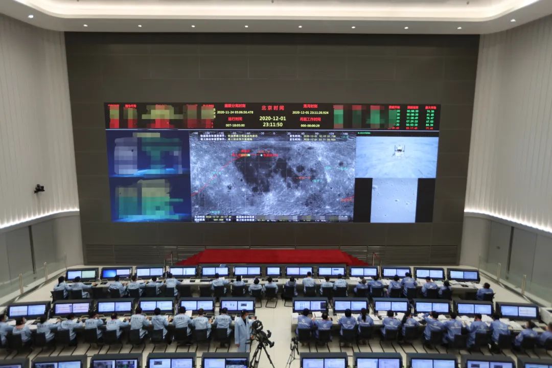 这是12月1日子夜时分的北京航天飞行控制中心。大厅里这群地球上的航天工作者,心早已随着“嫦娥”飞到了月球——此刻,嫦娥五号探测器正在小心翼翼地靠近月球表面。
