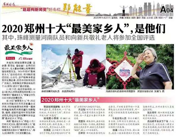 12月2日,全国“最美家乡人”评选投票通道将正式开通,经过本报与阿里巴巴天天正能量的共同评估,“敬礼老师”周慧玲、“为世界第一高峰量身高的河南男子汉子”韩超斌、程璐、谢敏两组郑州“最美家乡人”将参与最后阶段的角逐,快来为咱们郑州的最美家乡人点赞吧!