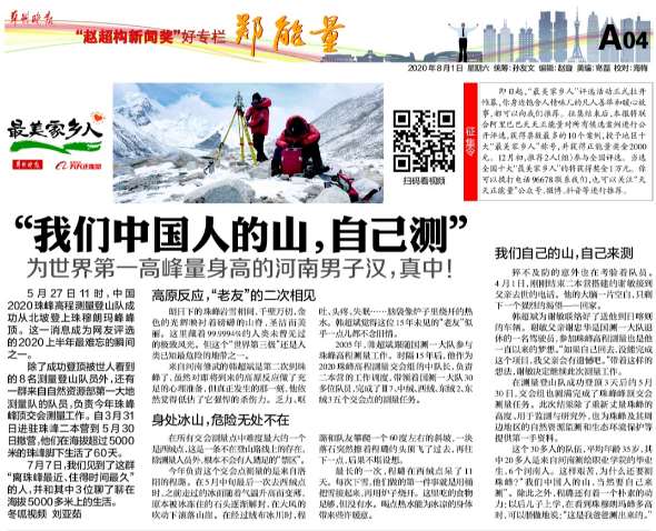 “为世界第一高峰量身高的河南男子汉子”韩超斌、程璐、谢敏在“敬业担当”组别,投票序号为:第10号。