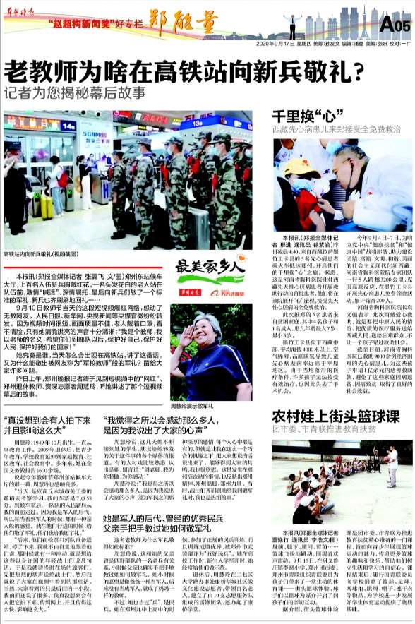 据了解,今年共有70组“最美”人物故事进入到全国评选阶段,本报推荐的“敬礼老师”周慧玲在“守望真情”组别,投票序号为:第12号;