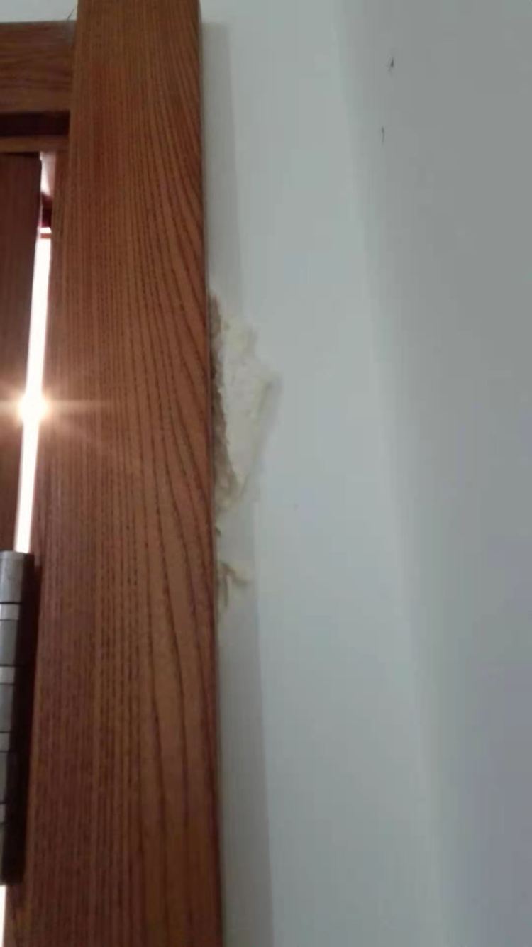 说起新房精装修的情况,侯先生表示问题实在是太多。“门都很轻巧,直打晃,门框开裂,侧面打胶一看就很糊弄,用手一掰都能掉下来,过门石也都是碎的。”侯先生称,精装修所用的材料明显就很差,别说是每平米2500元对的标准了,就连1000元都达不到。