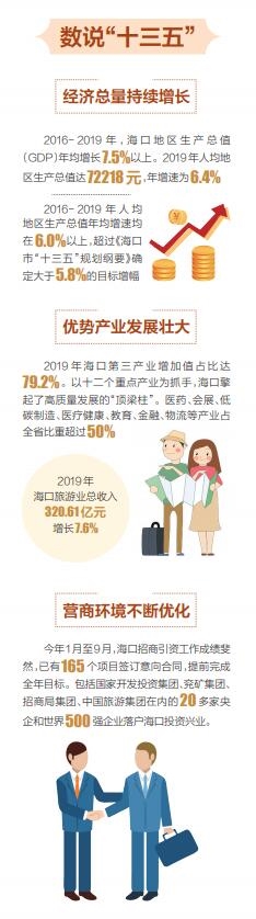 2016-2019年,海口地区生产总值(GDP)年均增长7.5%以上。