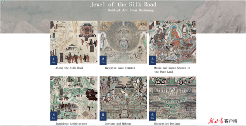 “丝路明珠——敦煌石窟艺术展”以中国石窟寺简介为篇首,敦煌石窟艺术为焦点,通过对窟体、壁画、塑像的线上特写陈列、重点展示、VR体验、动画演示,全方位、多维度、广角度的展示了敦煌石窟艺术的起源发展、分类分布、艺术特征、历史演变、传承保护,阐述了中国石窟艺术与世界多元佛教艺术的交汇交融、文明互鉴,成为此次上合组织成员国佛教遗产共享网络展的一大亮点。