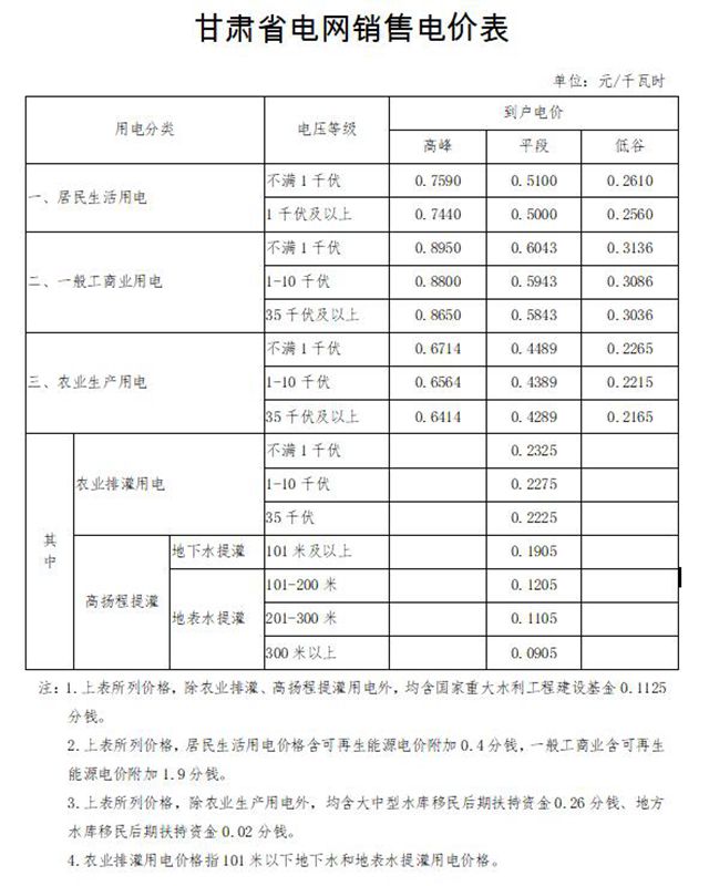 11月30日,省发改委发出通知,从2021年1月1日起调整甘肃销售电价优化峰谷分时电价政策。 也不再执行农村分类综合电价,全省农业排灌电价统一执行全省销售电价标准。