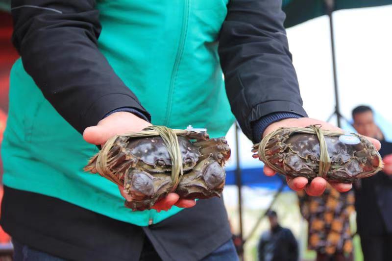 “今年,九龙口大闸蟹规格普遍偏大,公蟹可以达到8两以上,母蟹也能达到5两,品质上佳。”当地养殖户邵建华说,在今年的九龙口蟹王争霸赛上,通过体型,外观,体重,体长和肥满度等综合指标考评,他养殖的1.26斤的雄蟹,0.85斤的雌蟹一举成为今年的蟹王、蟹后。
