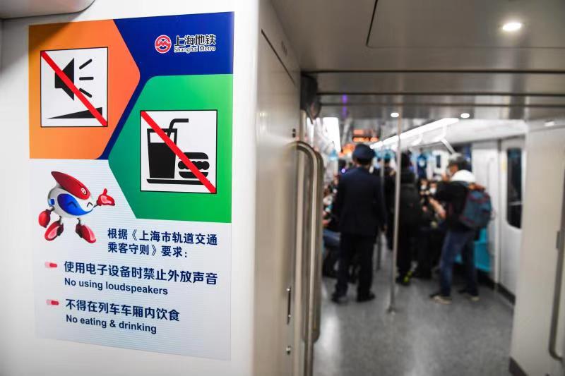 上海地铁也逐步在列车车厢内张贴标识,同时在广播内提醒乘客:使用电子设备时禁止外放声音。