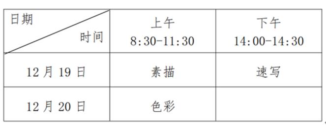 美术与设计类专业省统考安排在2020年12月19日-20日进行,各科目考试时间具体安排如下:
