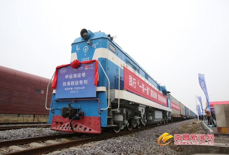 12月1日下午3时,随着火车汽笛声鸣响,中远海运号、马士基号两列铁海联运专列缓缓地从南昌向塘国际陆港出发,驶向浙江省宁波舟山港。