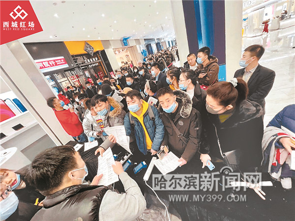 西城红场人流如潮,西城红场生活港副总经理崔琦介绍,为了配合政府这次大力度的“福利”,1日提前开门半小时,早9时就开门了,9时30分已有3万余人到店,商场内排队扫码和付款的人群,“头尾”横向往返四圈。该商场有哈市苹果数码品类最全的光线店,排队队伍长达500米,可见政府消费券的“受宠”程度。