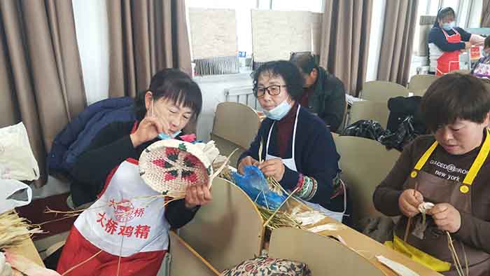 培训课聘请著名草编教师薛素荣讲解草编基本技法。培训现场大家你一言,我一语地互动交流,气氛浓厚热烈。大家都热情高涨,非常珍惜这次培训机会。在教师的精心指导和精彩讲解下,短短几天,新学员就掌握了基本技法,用玉米叶、乌拉草为原料,通过一双双巧手实现点“草”成金,“编”废为宝,编成草帽、收纳篮、桌垫、水果盘等草编工艺品。更为可喜的是,学员们编制的坐垫等工艺品当场被长春市某公司收购,并表示要长期订购。冬闲变冬忙,中和镇的妇女有了新“岗位”也有了新收入。