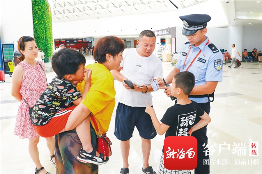 海口市公安局美兰国际机场分局机场派出所民警为乘机人员提供帮助。海口市公安局供图