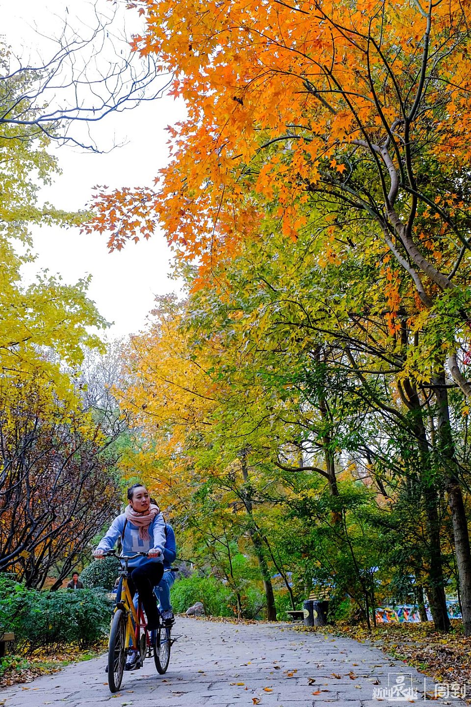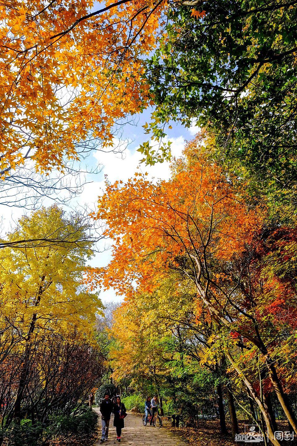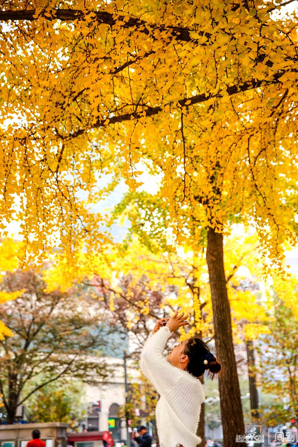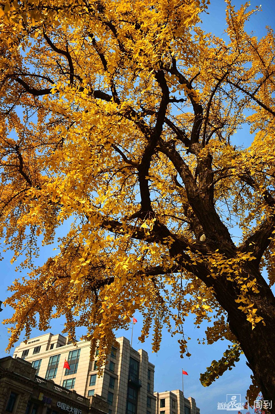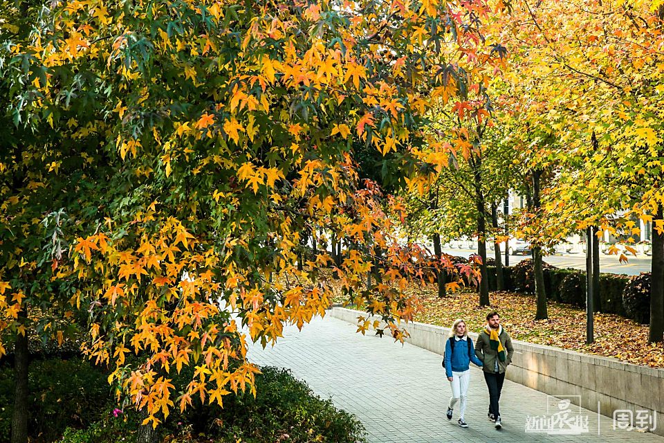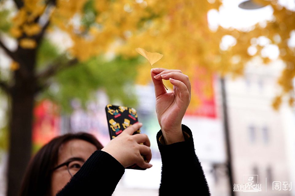 初冬的风里已有寒意,但却有不少银杏叶仍挂在枝头,树干和黄色的银杏叶互相交织,一阵风扫过,叶片旋转而落,各种色调的黄把这里铺垫成浪漫的金色长廊,总让路人为之驻足,更是吸引不少摄影爱好者特意前来捕捉这一抹黄。