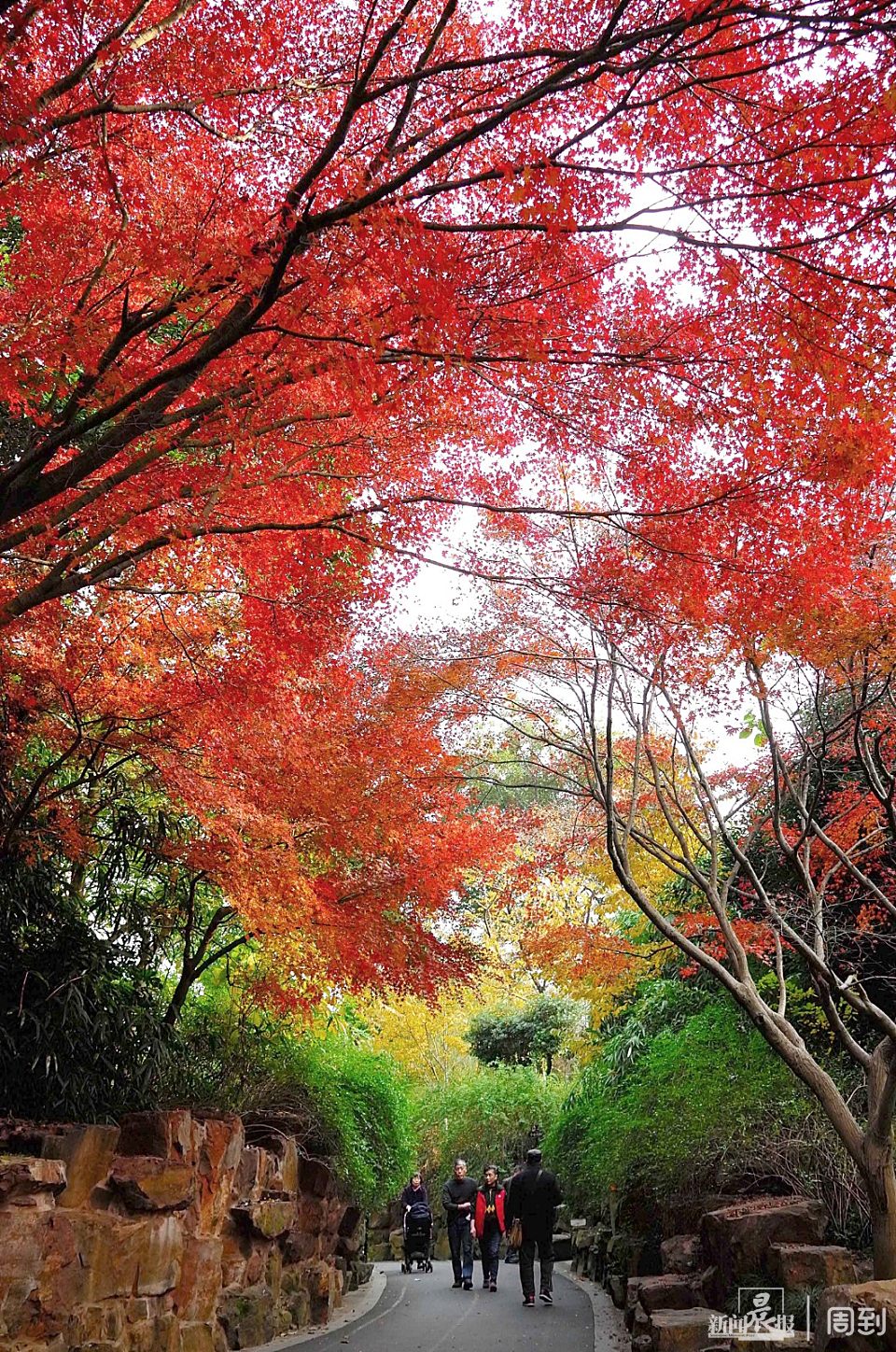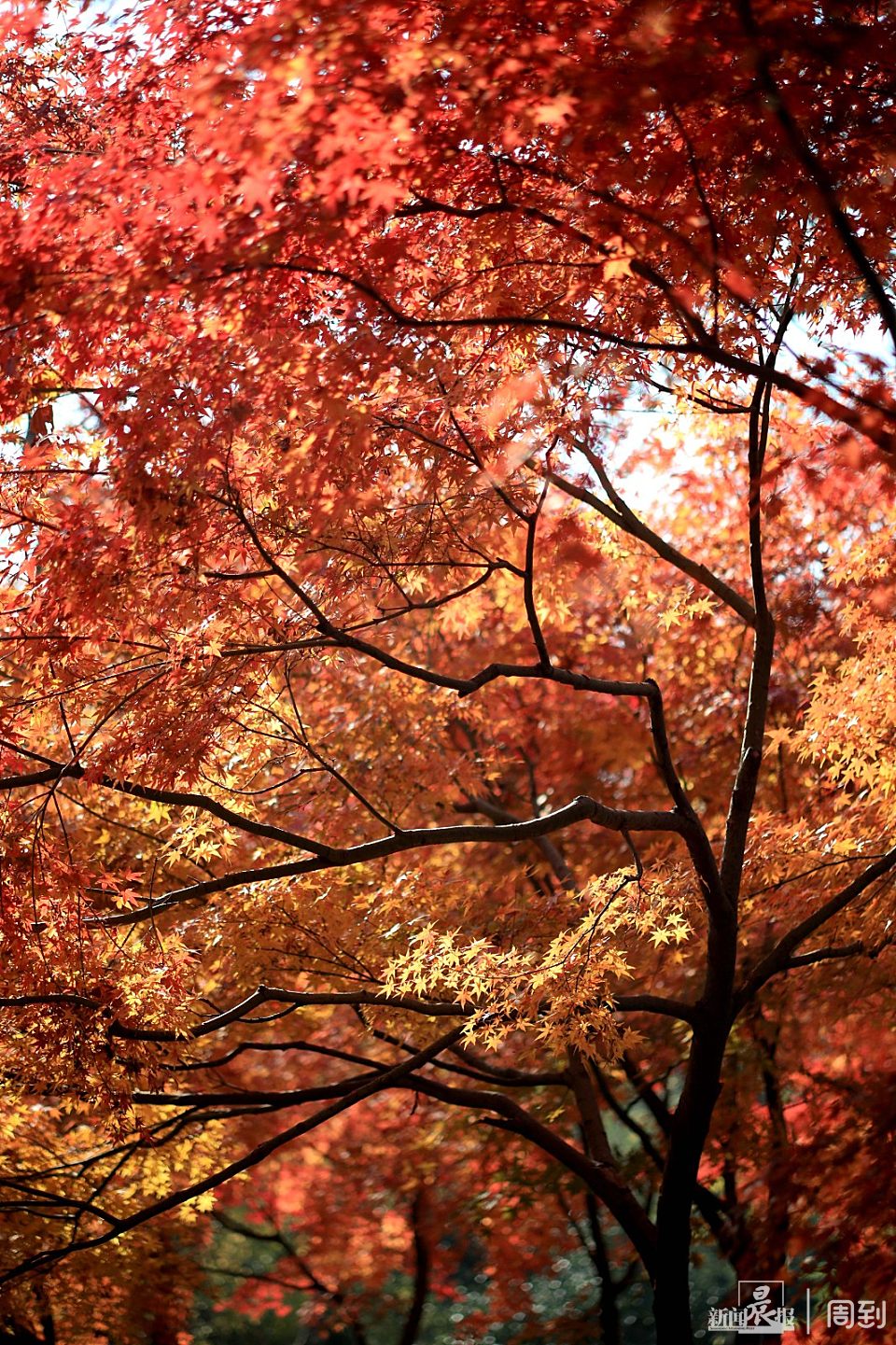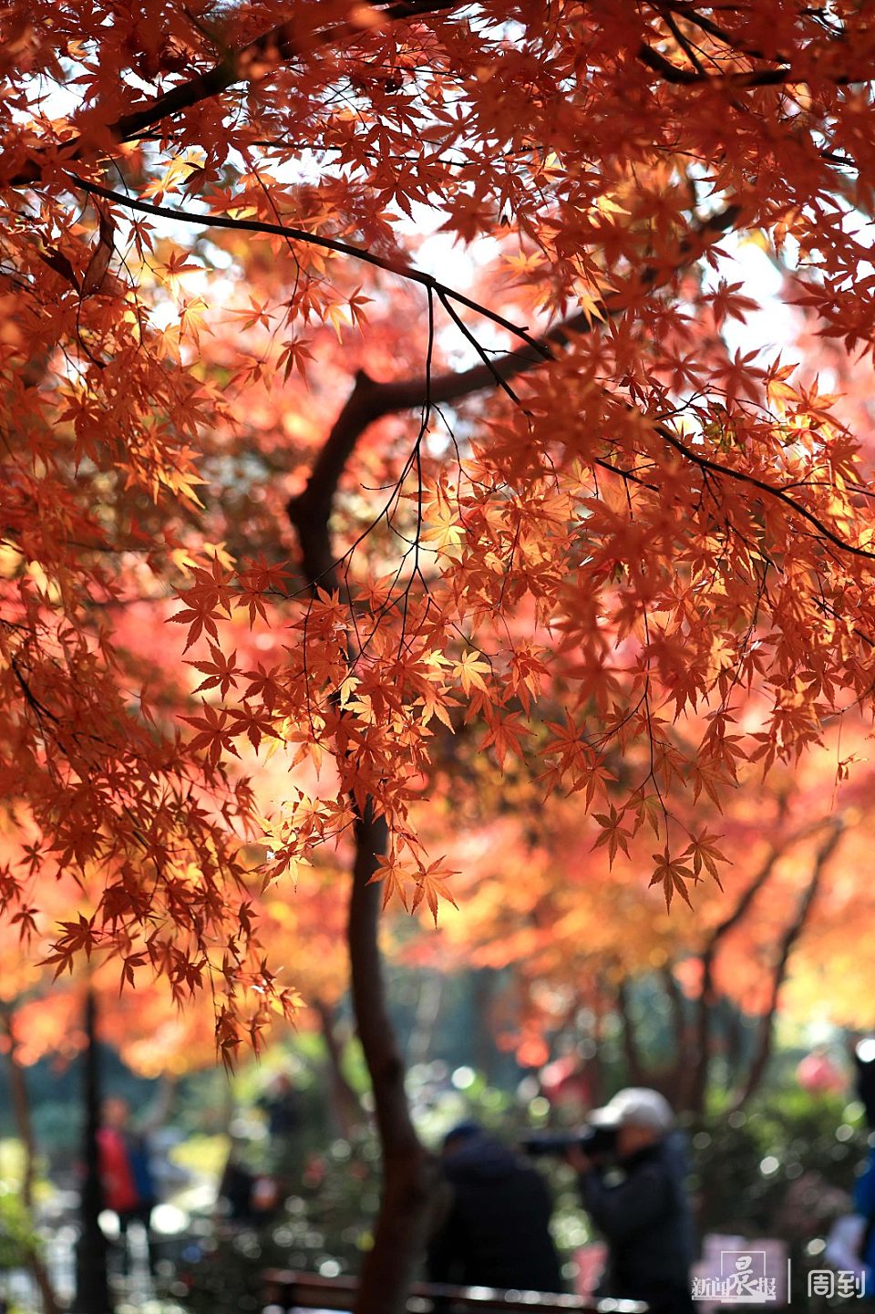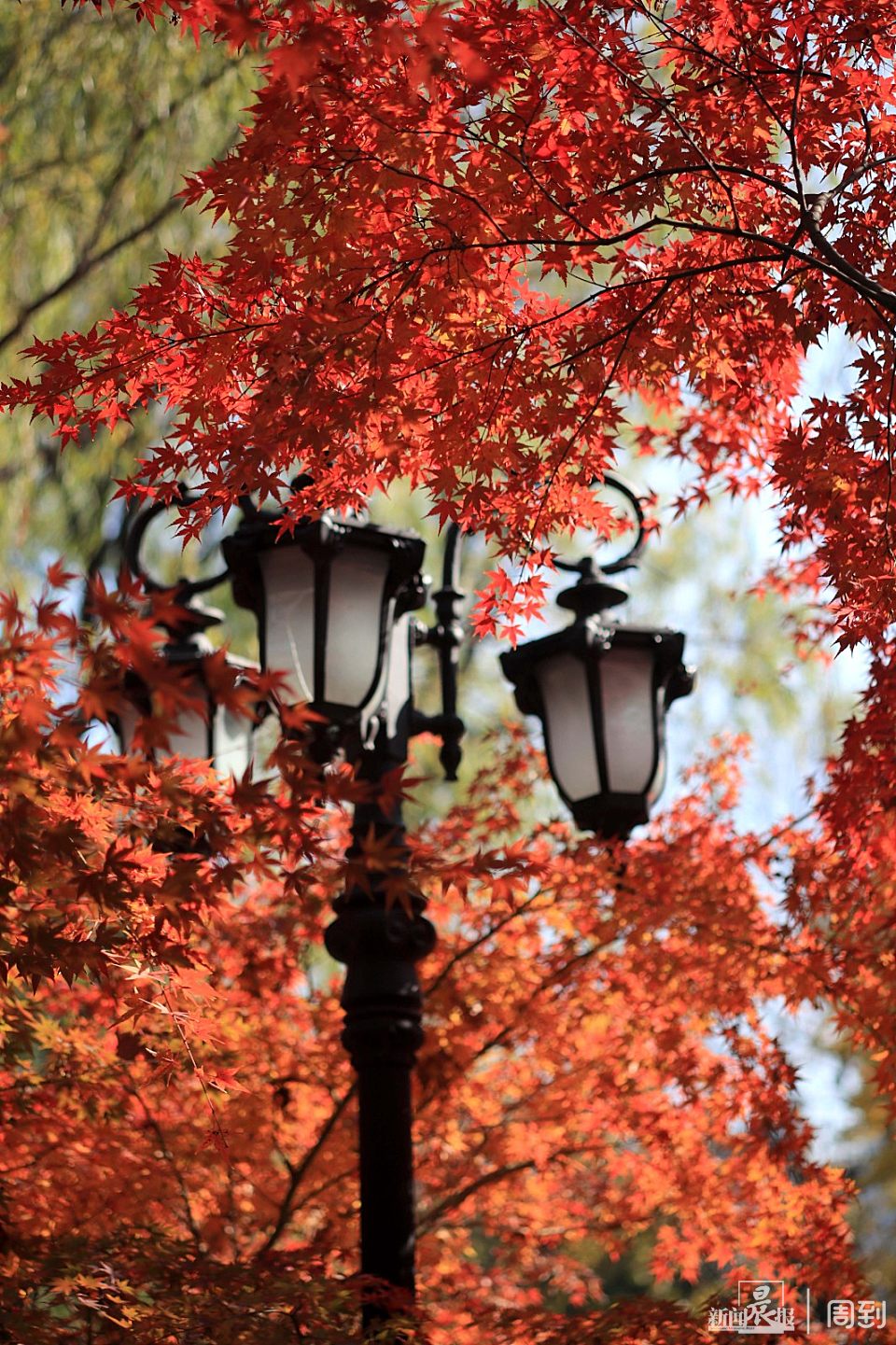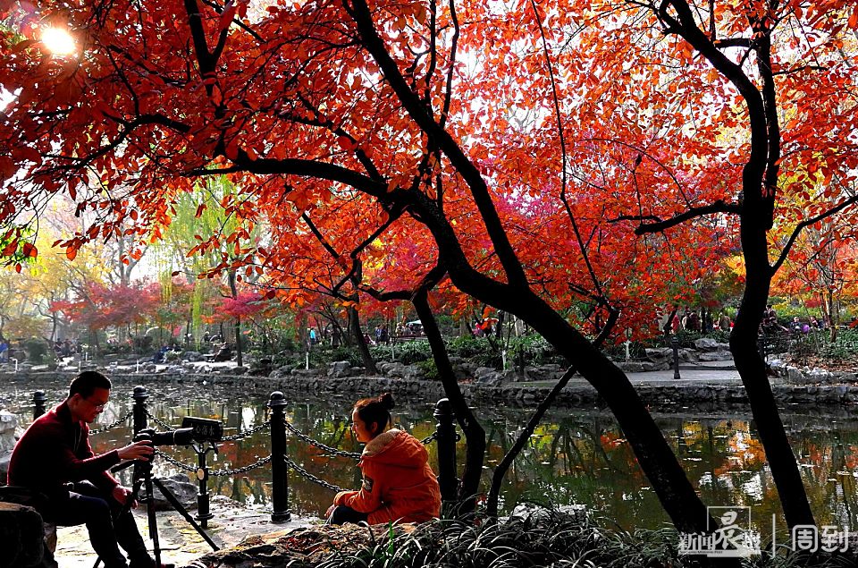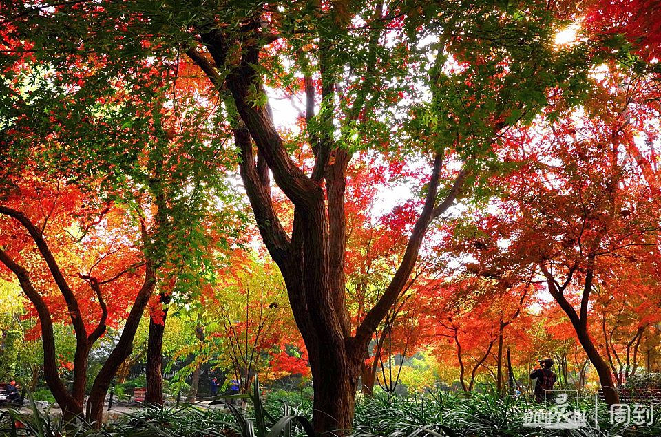 鲁迅公园全园分布着近400多株枫树,以青枫、红枫、鸡爪槭为主,集中分布在南门鲁迅纪念亭周边,北门广场小花坛、公园三号亭前等区域,每到初冬时节,满园绯红。