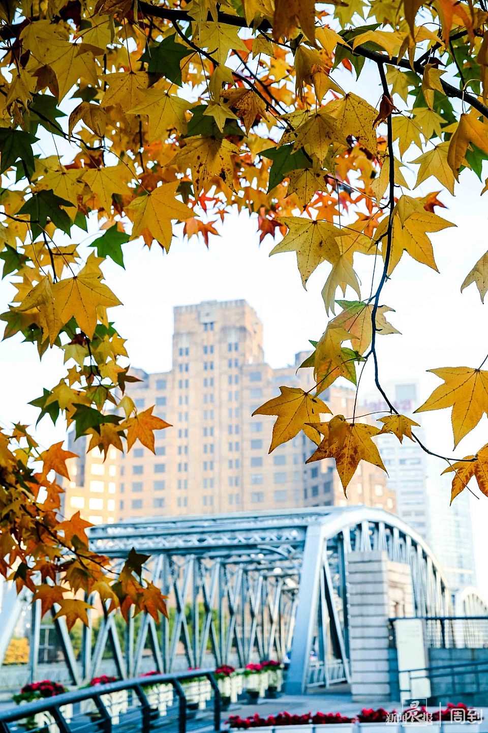 微凉的初冬,外滩滨江的彩叶在暖阳的照射下越发绚烂,尽展“秋色”,这一抹秋色给人带来美丽与温暖!从十六铺沿着外滩滨江一路走到外白渡桥,那成排的枫树、金黄的银杏、婆娑的梧桐层林尽染,绽放着油画般的迷人色彩,随手一拍,皆是风景。